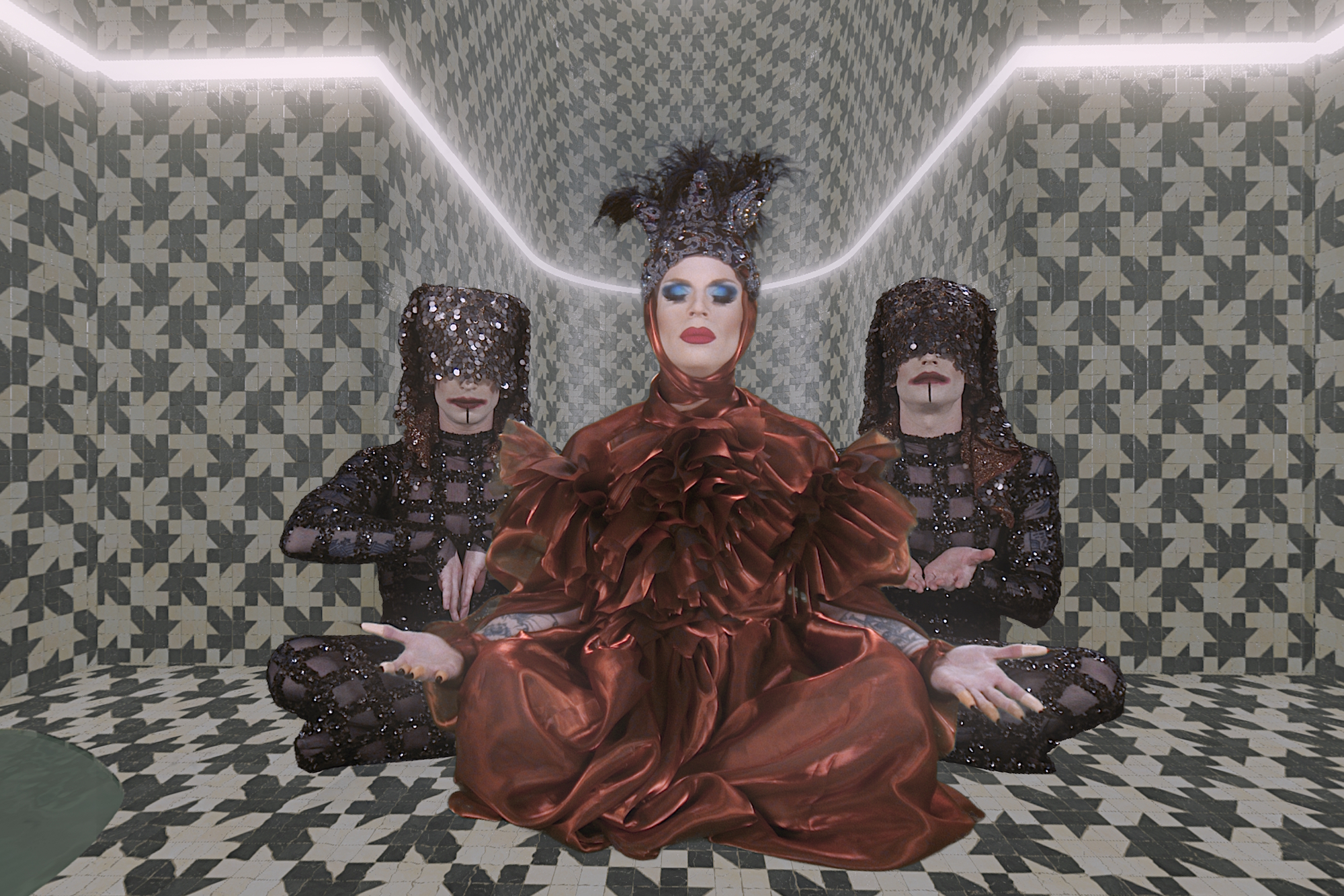 There’s this movie called Holy Mountain that has this temple set-up and we mirrored that with the opening image of me as an instructor and then the two disciples on each side. I also referenced the film Hellraiser. The film has these crazy demons called cenobites and that's what I modeled the look of the two demons on the side of the constructor after.