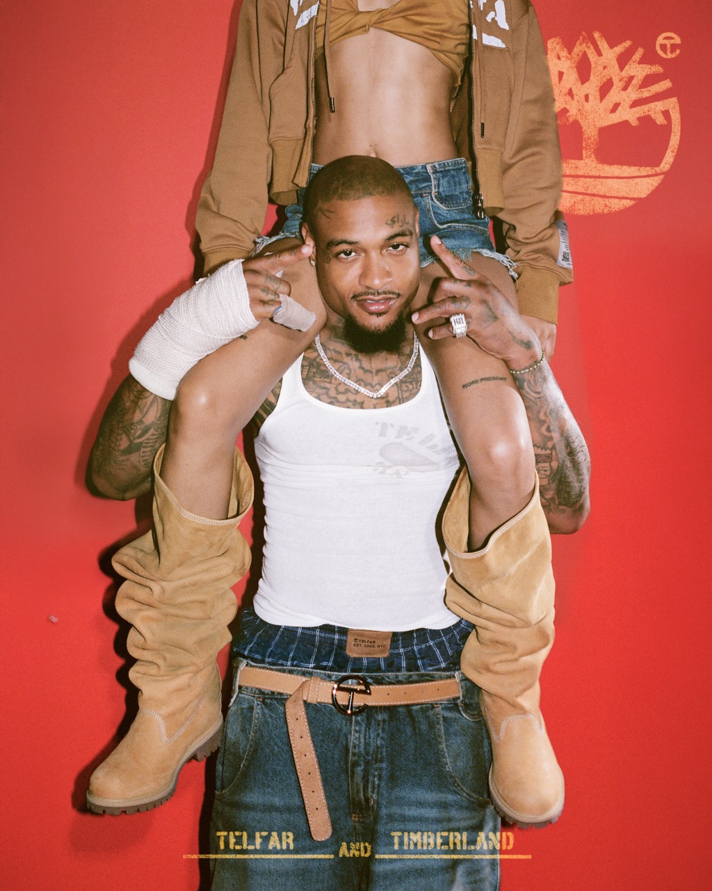 The Timberland x TELFAR Tall Pull-On Boot is carefully crafted with smooth pebble nubuck leather in two colorways, wheat and black. The boot can stretch beyond the knee for a more covert personality, but is also designed to align with a comfortable lifestyle, slouching, scrunching, draping, and folding as desired. This choice of styling draws attention to the soft buttery suede interior, inadvertently commenting on the inner world that comes into play when we undergo this intimate process of choosing what to dress ourselves in. In line with this inclination toward versatility, the collaboration offers a second option, the Mid Pull-On Boot, for those who prefer a bit more ease and freedom. Described as “Hip-Hop and R&B in boot form,” this shoe is more than an Autumn staple, but a mode with which we march into the sensory world of culture, demonstrating with every crease and crevice that style is a form of expression. It has a special ability to remind us of where we have come from and where we are going next.